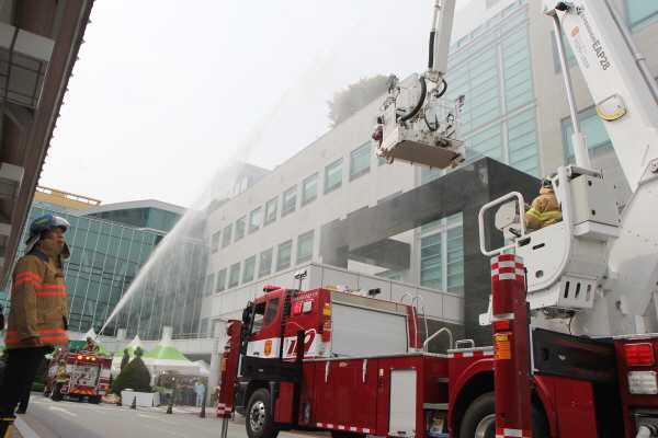 을지대학교병원(원장 홍인표)은 21일 병원 내·외부에서 화재예방 고취 및 초기대응 능력 강화를 위한 소방훈련을 실시했다.