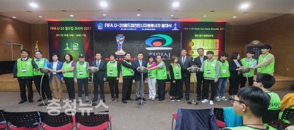 충남 천안시는 지난 22일 시청 대회의실에서 오는 5월 천안종합운동장에서 열리는 FIFA U-20 월드컵 대회 운영을 앞두고 자원봉사자 발대식을 개최했다.