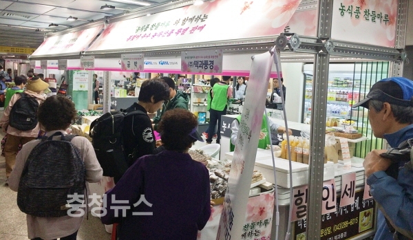 농림축산식품부(장관 김재수)와 한국농수산식품유통공사(사장 여인홍)는 코레일(사장 홍순만), 코레일유통(사장 유제복)과 함께 24일부터 29일까지 6일 간, 지하철 모란역사 내에 농공상융합형 우수제품 전용 판매·홍보관 ‘농식품 찬들마루’에서 봄맞이 특판 행사를 개최한다.