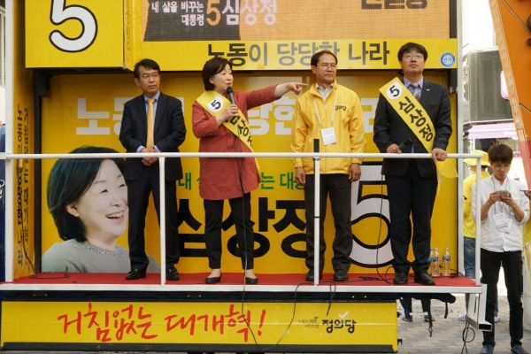 심 후보는 이날 오후 유성구 궁동 로데오거리에서 가진 유세에서 “이번 대선은 청년 학생들이 결정한다"며 "과감한 개혁으로 청년들의 삶을 바꾸고 노동이 당당한 대한민국을 이끌겠다"고 밝혔다.