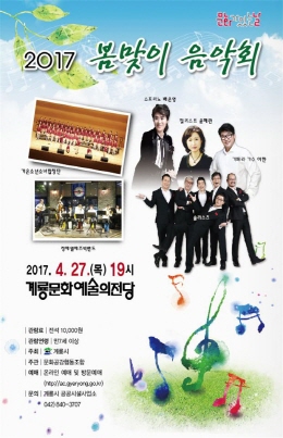 충남 계룡시(시장 최홍묵)가 오는 27일 오후 7시 계룡 문화예술의전당 대공연장에서 ‘2017 봄맞이 음악회’를 선보인다.
