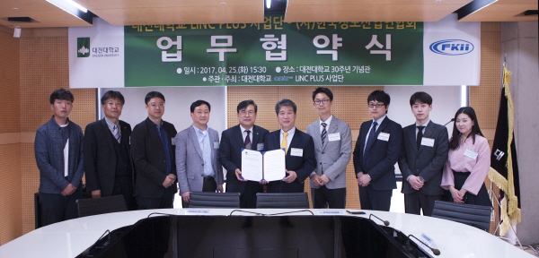 대전대링크플러스사업단(단장 김선태 교수)은 25일 대학 30주년기념관 소회의실에서 (사)한국정보산업연합회(회장 이상현)와 상호 우호증진 및 협력을 위한 업무협약(MOU)을 체결했다.
