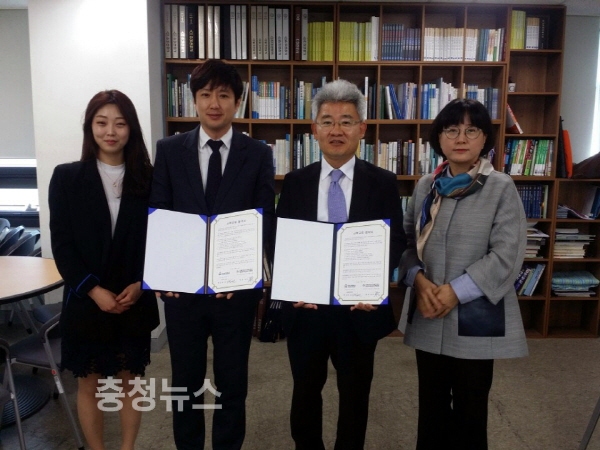 왼쪽부터 구하라 사회복지사, 장인국 원장, 김성한 학과장, 이영미 교수