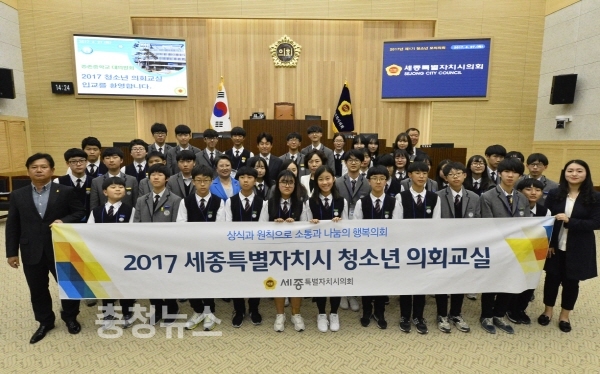 세종특별자치시의회(의장 고준일)는 27일 3층 본회의장에서 종촌중학교 학생 40명을 대상으로 ‘2017년도 제1기 청소년 의회교실’을 개최했다.