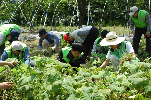충청체신청(청장 이계순)에서는 2007. 5. 31.(목) 직원 30여명이 영농철을 맞아 일손이 부족하여 어려움을 겪고 있는 논산시 양촌면 상리마을을 방문하여 농촌일손을 도왔다.