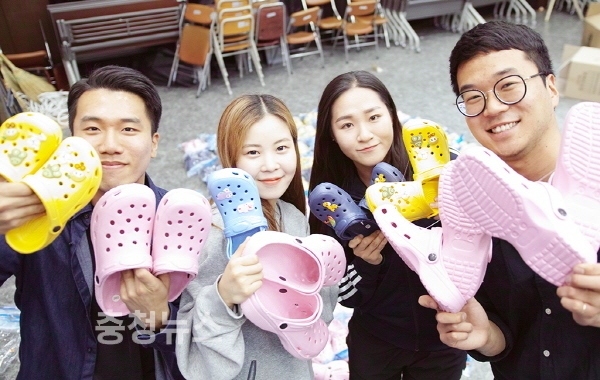 충남대학교 해외봉사단은 지난 겨울방학 동안 2주간(1월 10일~24일) 캄보디아 씨엠립 지역에서 봉사활동을 펼치며 인연을 맺은 오지마을인 폼스와이르의 원주민 어린이들을 위해 신발 선물을 준비했다. 어린이 신발과 성인 신발 등을 포함해 200여 켤레가 캄보디아 현지로 발송될 예정이다.