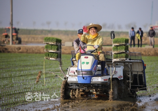 이날 모내기에는 김홍장 당진시장도 동참하고, 이른 새벽부터 모내기에 분주한 농업인들을 격려하며 올 한해 큰 자연 재해 없이 풍년농사를 이루기를 기원했다.