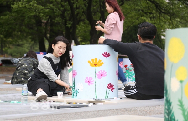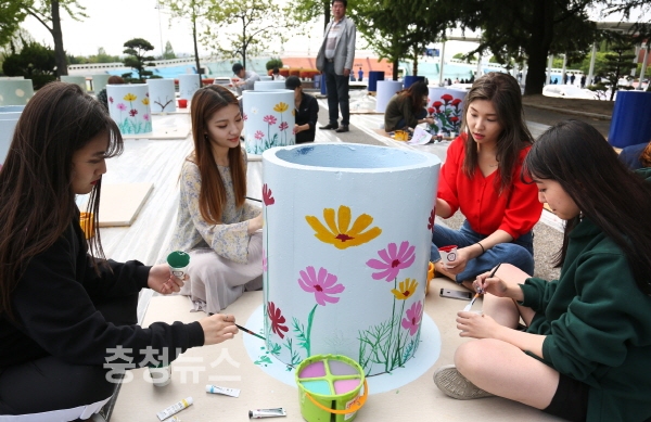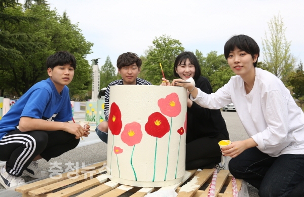 교내 캠퍼스 곳곳에 놓여 있던 낡은 쓰레기통 60개를 한 대 모아 페인트통과 붓을 들고 쓰레기통에 주변 환경들과 어울리는 다양한 꽃을 그리며 환경 개선에 앞장선 것이다.