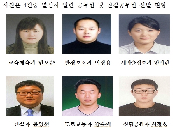 보령시, 4월 친절 및 열심히 일한 공무원 선정