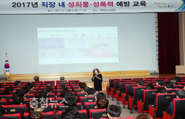 충남도교육청(교육감 김지철)은 1일 본청 대강당에서 전 직원을 대상으로 직장 내 성희롱·성폭력 예방교육을 실시했다.