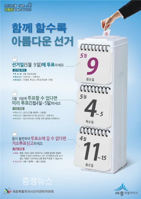 세종특별자치시(시장 이춘희)가 오는 9일 실시되는 대통령선거와 관련하여 시민들의 투표율 제고를 위해 홍보에 총력을 기울이고 있다.