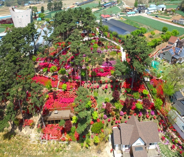 충남 서산시 인지면 모월2리에 위치한‘쉼이 있는 정원’에 활짝 핀 철쭉이 상춘객들의 눈길을 사로잡고 있다.