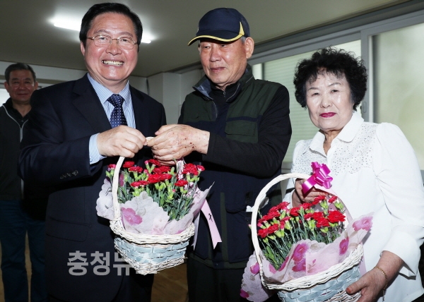 경로당 방문, 양묘장에서 정성스레 키운 카네이션 전달