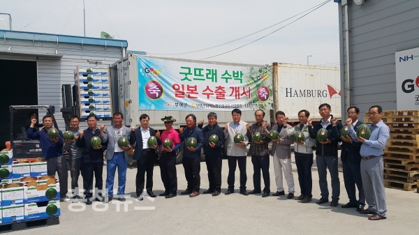 이날 선적된 굿뜨래 수박은 1차 물량으로 앞으로 3차에 걸쳐 약 30t 가량의 굿뜨래 수박을 일본 북해도로 수출할 예정이다.