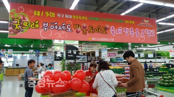 충남 부여군(군수 이용우)은 4일 서울시 서초구에 위치한 농협유통 양재물류센터에서 농협직원, 조공법인 및 공선회원이 참여하여 대대적인 굿뜨래 방울토마토 판촉행사를 개최했다.