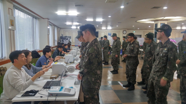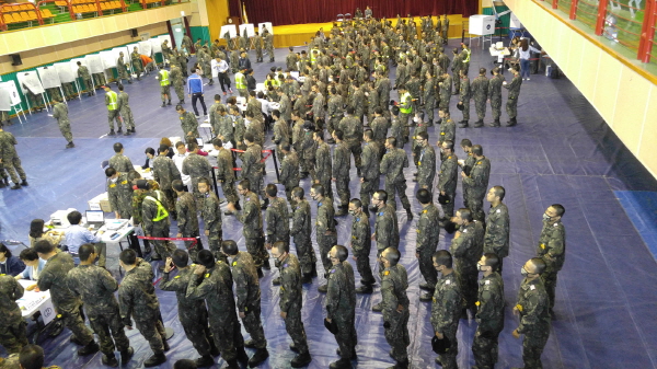 19대 대선 사전투표가 4일부터 시작된 가운데 논산시 연무읍제2사전투표소와 계룡 신도안면 투표소에서는 군인들의 사전투표가 이어지고 있어 눈길을 끌고 있다.