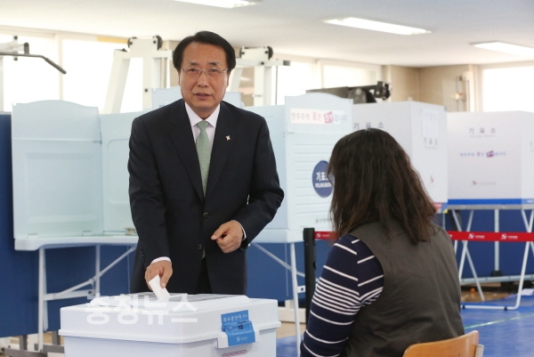 한현택 동구청장은 제19대 대통령선거 사전투표 첫날인 4일 가오동 가오중학교 다목적체육관에 설치된 효동사전투표소를 찾아 소중한 한 표를 행사했다.