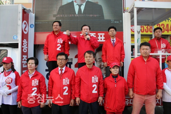 자유한국당 대전시선거대책위원회는 7일 대전 서구 관저동 마치광장과 가장동 한민시장 입구에서 이인제 중앙선대위 공동의장을 비롯한 이은권 대전시당위원장, 이영규 서구갑당협위원장 등이 참석한 가운데 홍준표 대통령 후보 지지를 호소했다.