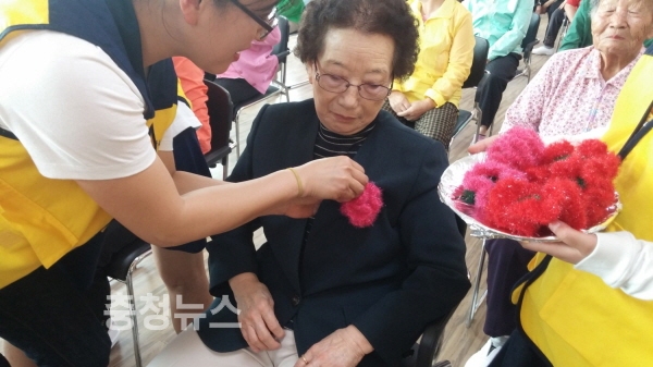 충남 서천군 마산면(면장 이명근)은 지난 4일 서천군 자원봉사센터와 마산면 자원봉사 거점센터가 주관이 되어 마산어르신들에게 정성 가득한 카네이션을 직접 달아드리는 행사를 진행했다.