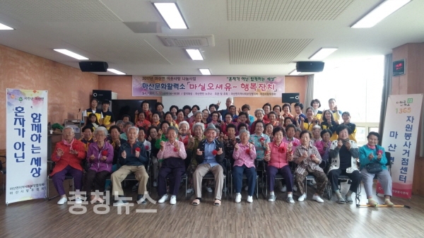 마산문화활력소 행복경로당에 참석하시는 관포리 김옥희 어르신은 “농촌에서는 농사일로 항상 바쁜데 젊은사람들이 웃는 얼굴로 나이든 사람을 찾아주고, 챙겨주고, 다양한 행사를 준비해 즐겁게 해줘서 항상 고맙다”고 말했다.