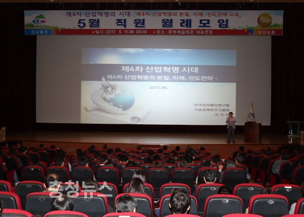 충남 청양군은 11일 청양문예회관에서 이석화 군수를 비롯한 공직자 등 350여 명이 참석한 가운데 제4차 산업혁명시대의 도래에 따른 대응전략 모색을 위한 직장교육을 실시했다.