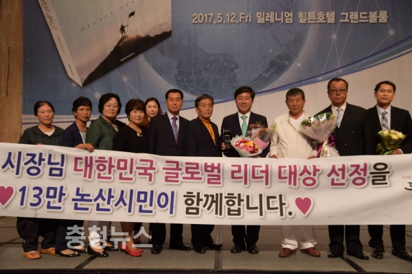 충남 황명선 논산시장이 12일 밀레니엄 힐튼호텔에서‘2017 대한민국 글로벌리더 대상’식에서 대상을 수상했다.