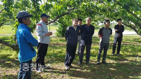 지난 13일 강풍과 우박으로 큰 피해 입은 예산지역 과수 농가 현장점검