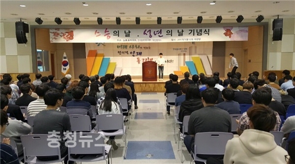 한국폴리텍Ⅳ대학 대전캠퍼스(학장 이인호)는 15일 1공학관 대강당에서 2017년 제36회 스승의 날을 맞이하여 23대 ‘늘품총학생회’ 주최로 교직원을 대상으로 기념 행사를 진행하였다.