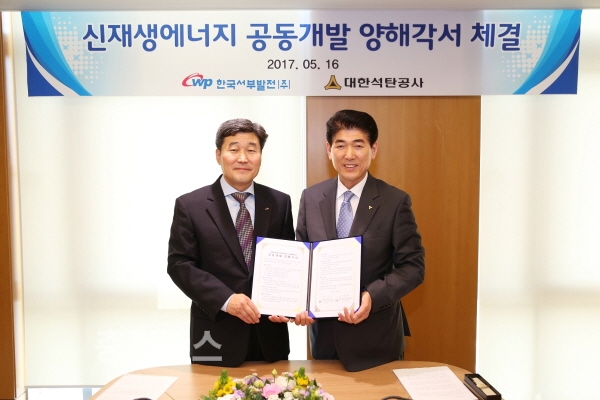 한국서부발전(사장 정하황)은 16일 본사(충남 태안군 소재)에서 대한석탄공사(사장 백창현)와 ‘신재생에너지 공동개발’을 위한 양해각서를 체결했다고 밝혔다.