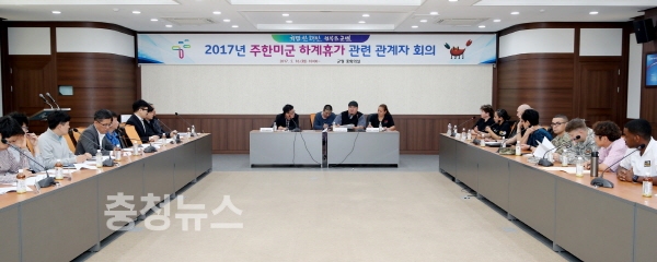 이번 관계자 회의는 전국 각지에 있는 주한미군들의 하계휴가를 위한 것으로, 주한미군 600여 명은 내달 16일부터 18일까지 3일간 근흥면 연포해수욕장 일원을 방문해 휴가를 보내는 ‘보스 비치 블래스트(BOSS Beach Blast)’ 행사를 가질 예정이다.