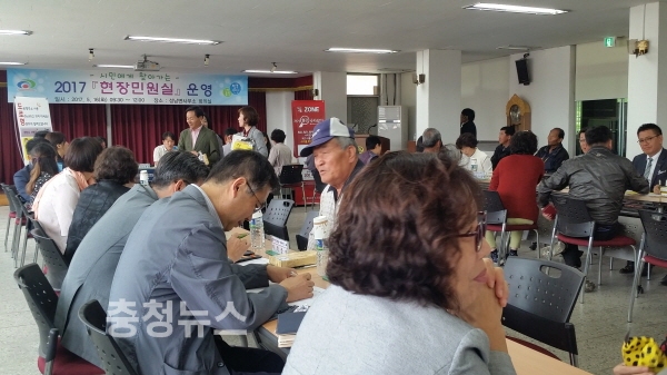 이날 민원실에는 성남면 150여명의 주민이 참여한 가운데 25명의 시청 공무원들이 총 106건의 민원을 상담하면서 지역 주민들의 뜨거운 관심과 참여가 돋보였다.