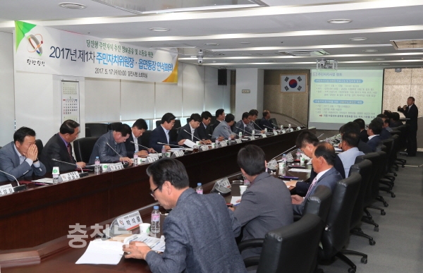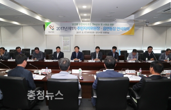 충남 당진시는 17일 시청 소회의실에서 14개 읍면동 주민자치위원장과 읍면동장이 함께 참석하는 올해 첫 연석회의를 개최하는 등 대선으로 미뤘던 당진형 주민자치 사업을 본격화 했다.