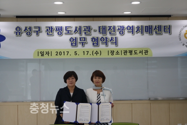 대전광역치매센터(센터장 이애영)는 17일 관평도서관(관장 박현희)을 대전 지역‘치매극복 선도도서관’으로 지정하고 치매 정보 전달과 교육사업 운영을 위한 업무협약을 체결했다.