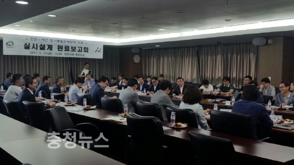 이날 보고회는 구본영 천안시장과 복기왕 아산시장, 관련부서 공무원 등 43명이 참석한 가운데 그동안 진행된 실시설계 전반적인 결과를 설명하고 앞으로의 구축 일정과 각 부서의 역할을 공유했다.