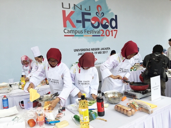 농림축산식품부(장관 김재수)와 한국농수산식품유통공사(aT, 사장 여인홍)는 세계 최대 할랄시장인 인도네시아에서 한국 농식품의 우수성을 알리기 위해 지난 18일부터 19일까지 이틀간 자카르타 국립대학교인 UNJ(Universitas Negeri Jakrta)에서 「K-Food Campus Festival 2017」을 개최 중이다.