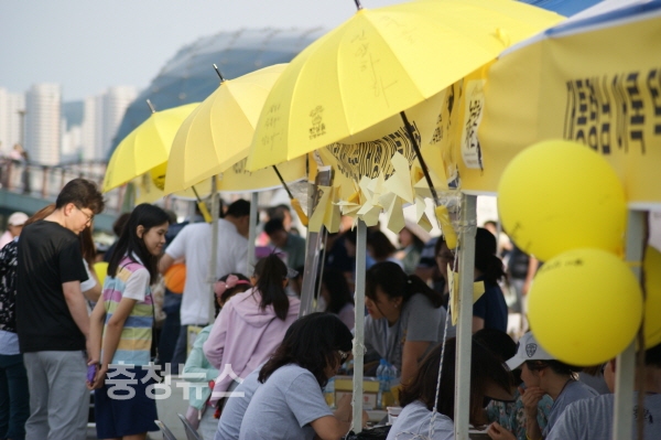 앞서 이날 오후 2시부터 호수공원에는 다양한 시민참여행사와 함께 고 노무현 대통령을 기리는 시민들로 가득했다.