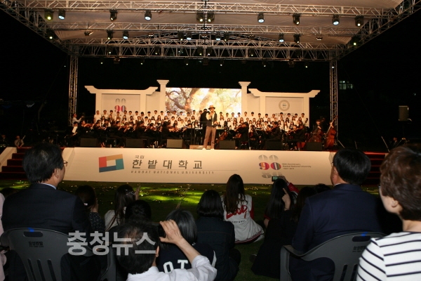 지난 19일 저녁부터 한밭대 대운동장에서 열린 이 축하음악회는 지역 시민 등 5천여명이 참석한 가운데 3시간여에 걸쳐 화려하고 감동적인 무대가 펼쳐졌다.