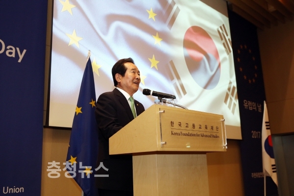 정 의장은 “지난 5월 9일은 유럽과 대한민국 모두에 매우 의미 깊은 날”이라면서 “오늘날 유럽연합의 기원이 되는 ‘슈만 선언’이 울려 퍼진 날이며, ‘새로운 대한민국’을 염원하는 우리 국민의 선택을 통해 새로운 대통령, 새로운 정부가 출범한 날“이라고 말했다.
