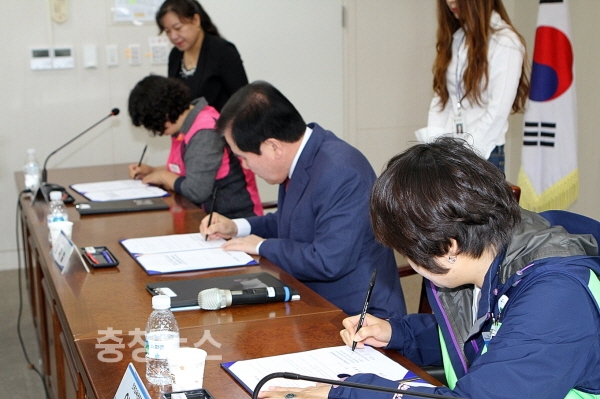 김지철 교육감은 “충남도교육청은 학교비정규직을 포함한 학생, 학부모, 모든 교직원이 주인이고 모두가 함께 행복해야 한다”며 “오늘 협약이 행복한 직장생활과 자존감을 높일 수 있는 새로운 계기로 자리매김해 앞으로도 노․사가 동반자 관계를 더욱 견고히 유지해 줄 것”을 당부했다.