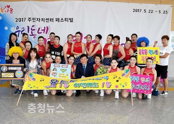 대전 중구 용두동(동장 윤원옥) 주민자치프로그램 에어로빅팀인 ‘언니쓰’가 22일 대전시청 대강당에서 개최된 2017 주민자치센터 페스티벌에서 당당히 최우수상을 거머쥐며 상금 450만원도 획득했다.