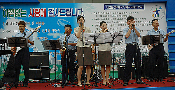 대전둔산우체국(국장 김홍재)에서는 7. 3(화) 오후 5시 우체국 전면 야외 특설무대에서 집배원으로 구성된 보컬그룹(캄보밴드)의 로고송 공연이 있었다.