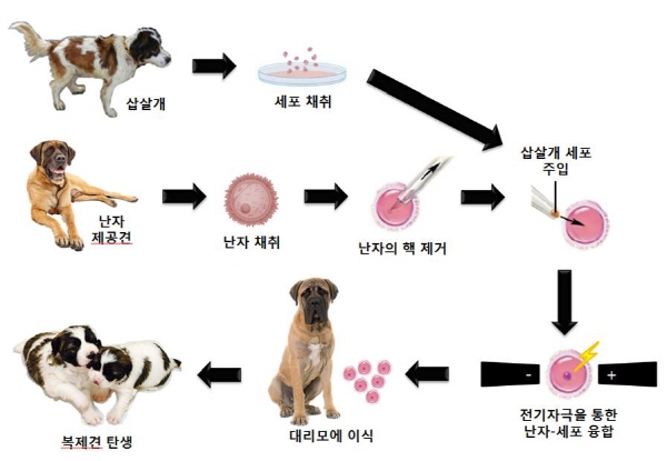 김민규교수팀은 삽살개 재단으로부터 이 삽살개의 체세포를 받아 난자제공견의 난자에 주입하는 방식으로 난자와 수컷의 세포를 융합시킨 후 대리모견에 이식해 임신과정을 거쳐 복제에 성공했다.
