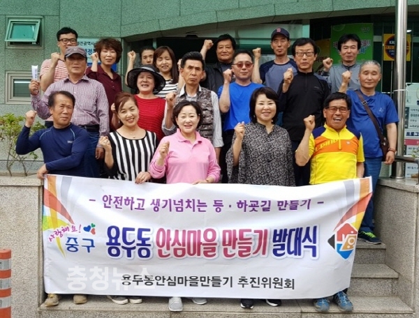 대전 중구 용두동 안심마을만들기추진위원회(위원장 박종각)는 24일 동주민센터에서 회원 및 주민들이 참석한 가운데 생기 넘치는 등하굣길을 위한 ‘안심마을 만들기 발대식’을 개최하고 본격 활동에 들어갔다.