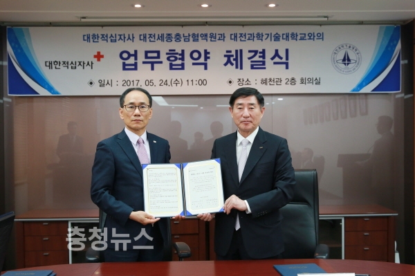 대전과학기술대학교(총장 김은기)는 대한적십자사 대전세종충남혈액원(원장 강재원)과 24일 11시 혜천관 회의실에서 ‘사랑의 헌혈 약정’ 체결식을 가졌다.