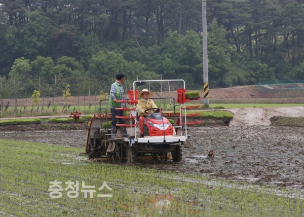 이석화 청양군수가 계속되는 가뭄 등 기상이변으로 어려운 여건 속에서도 일 년 농사의 시작 모내기가 한창인 영농현장을 찾았다.