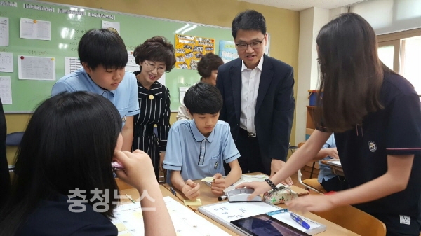 이승복 부교육감은 25일 ‘세종시 미래형 스마트(SMART)교육의 추진을 위해 교육청에서 무엇을 어떻게 지원해야 하는지‘에 대한 현장의 의견을 수렴하고자 도담중학교 스마트교육 현장을 방문했다.