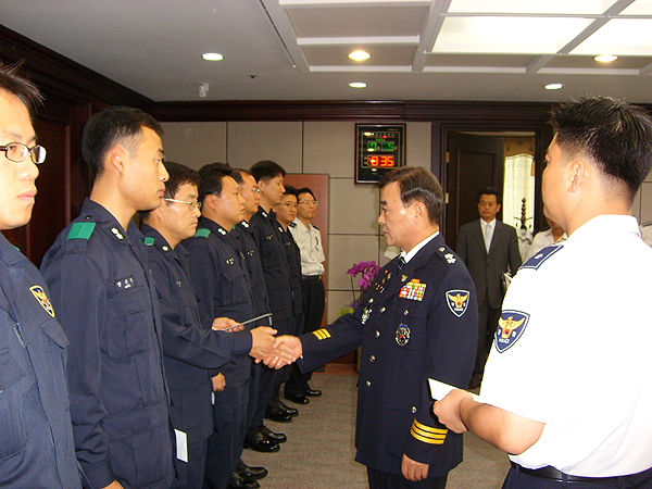 5일 오전 대전지방경찰청장(치안감 이영화)은 청장실에서 기동1중대장 경감 김재철등 상설중대장 7명과 자체경비대 담당자 1명에게, 각종 집회현장 및 치안 현장에서 수고하는 전·의경에 대해 노고를 치하하며 총300만원상당의 농협상품권을 전달하였다.