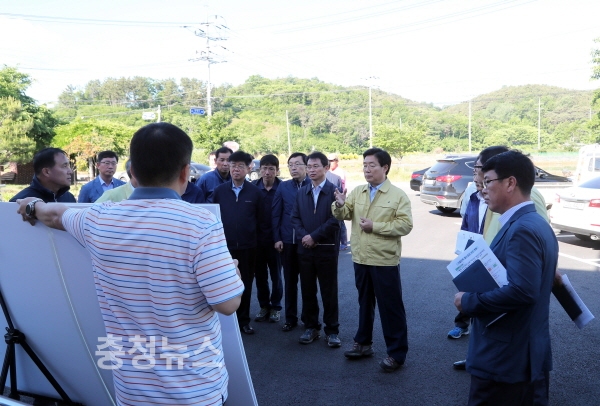 김홍장 당진시장 점미면 일원 가뭄현장 방문 모습