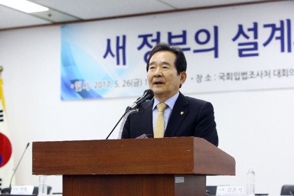 정세균 국회의장은 26일 오후 분 국회 입법조사처 대회의실에서 열린 2017 한국정책학회 「새 정부의 설계와 대통령의 역할」세미나에 참석했다.