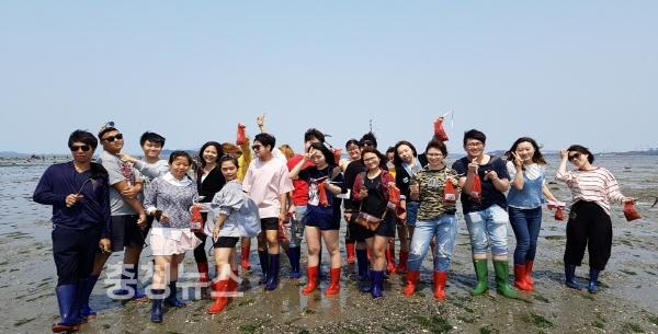 재한 외국인 유학생 대상 팸투어 장면(갯벌체험)